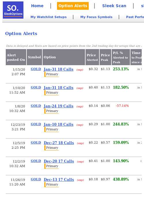 $GOLD [Jan-31 18 Calls] up +182.50% Alerted at $0.40 on Jan 10 2020 11:37AM Peak after alert $1.13 on 2020-01-27 Daily Progress: https://sleekoptions.com/st.aspx?ald=bcf53e5b-94e8-4ec1-ac46-6866bd5431da … -