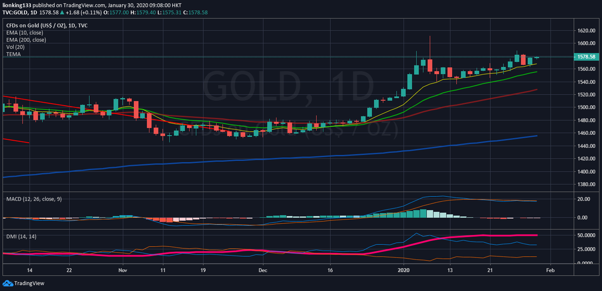 $GOLD forming a base for a possible blue sky breakout. Has to break and stay above 1600 area. possible short term target 1,650 then 1700, most bullish will be 1,800 ADX is at 49. 3 weeks in. probably 1-2 more weeks for a stronger move.$JNUG$UGLD you cant make this shit up pic.twitter.com/aYTbTVkMYs