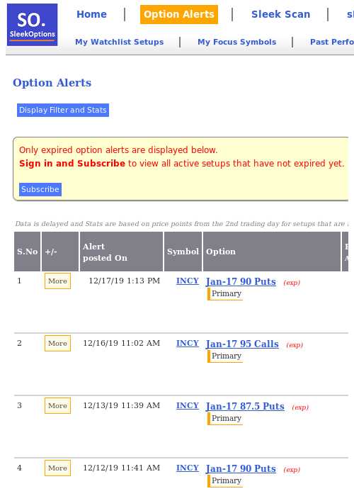 $INCY [Jan-17 87.5 Puts] up +524.00% Alerted at $2.00 on Dec 13 2019 11:24AM Peak after alert $12.48 on 2020-01-03 Daily Progress: https://sleekoptions.com/st.aspx?ald=fb195b26-fbf9-4b5a-b186-6a4acdde48b3 … -