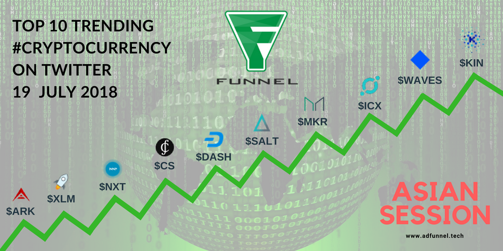 #Cryptocurrency On Twitter - 19 July 2018 (Asian session) 1$KIN 2$WAVES 3$ICX 4$MKR 5$SALT 6$DASH 7$CS 8$NXT 9$XLM 10$ARK Please visit http://beta.adfunnel.tech/ for the top 100#cryptos trending on Twitter$FNLpic.twitter.com/blWxFlKBdW