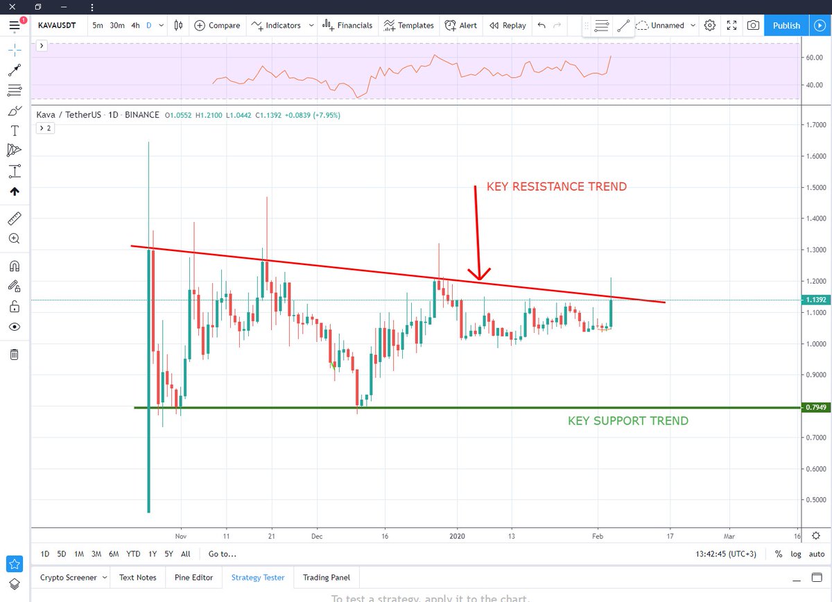 $KAVA /$USDT During$BTC correction i prefer to trade USDT pairs . AS KAVA ranging between key resistance trend and key H support the last pump rejected by key resistance trend If managed to flip it to support i can say it will fly regardless bitcoin movementpic.twitter.com/Nl6piC0YNQ