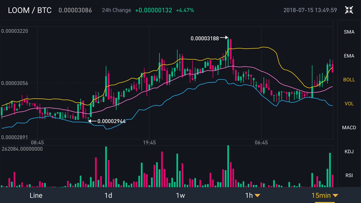 #Loom bounced off support at the 20dma and 0.618fib BB pinch in 4H & 6H Close above the upper band in 15min tf with expanding volume Macd histogram upticking Indicators are showing positive signs for$loom#dyor is highly advised here as i haven't fully recovered from flu