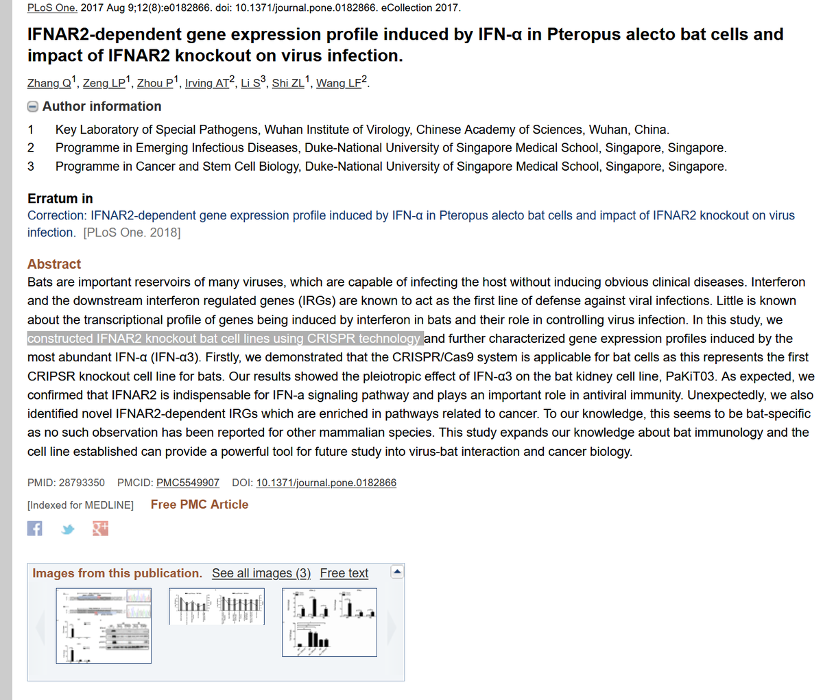 #CRISPR experiment gone wrong ? "IFNAR2-dependent gene expression profile induced by IFN-α in Pteropus alecto#bat cells and impact of IFNAR2 knockout on virus infection" using#CRISPR#Wuhan Institute of Virology#coronavirus#biotech$XBI$NBI https://www.ncbi.nlm.nih.gov/pubmed/28793350 pic.twitter.com/OGiDrO5s6K