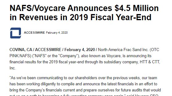 $NAFS Announces $4.5 Million in Revenues in 2019 Fiscal Year https://finance.yahoo.com/news/nafs-voycare-announces-4-5-133000264.html …$PURA$UOIP$KICK$SPRV$HUGE$RSHN$HHSE$NBDR$ACNNF$USMJ$PHGUF$WISH$ARGQ$CHSH$KGKG$LEAS$DAVC$LRSV$ONCI$ITCC$NWBO$SRHIF$CYDY$CRWG$PWDY$AMPGpic.twitter.com/M3RnsfwvCR