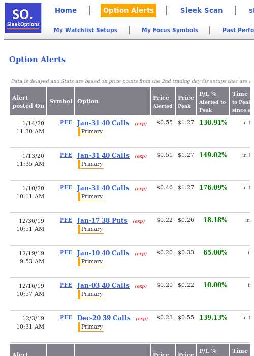 $PFE [Jan-31 40 Calls] up +176.09% Alerted at $0.46 on Jan 10 2020 9:56AM Peak after alert $1.27 on 2020-01-24 Daily Progress: https://sleekoptions.com/st.aspx?ald=1e11eb0c-a821-4dfe-9c19-516806ff7238 … -