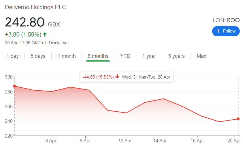 $ROO stock price is too expensive? https://www.fool.co.uk/investing/2021/04/22/deliveroo-shares-still-look-expensive-to-me/ … -