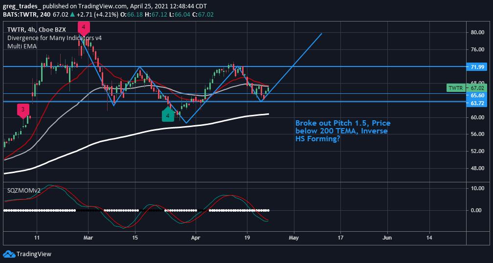 $TWTR inverse HS forming on the hourly. We are testing support, then flying