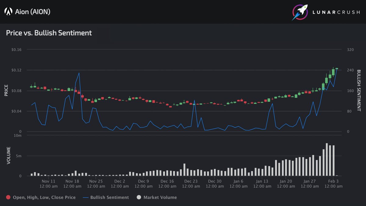 Bullish are we? Aion bullish sentiment just broke out to an all-time high today with 253 out of 395 posts being bullish or very