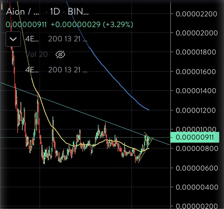 $AION now it’s 𝘳𝘦𝘢𝘭𝘭𝘺 time to pay attention. I almost jumped ship but I stopped myself because I laid ground rules. Not about to break my own promises. Looks primed if it does breakout pic.twitter.com/p2G1L0KldE