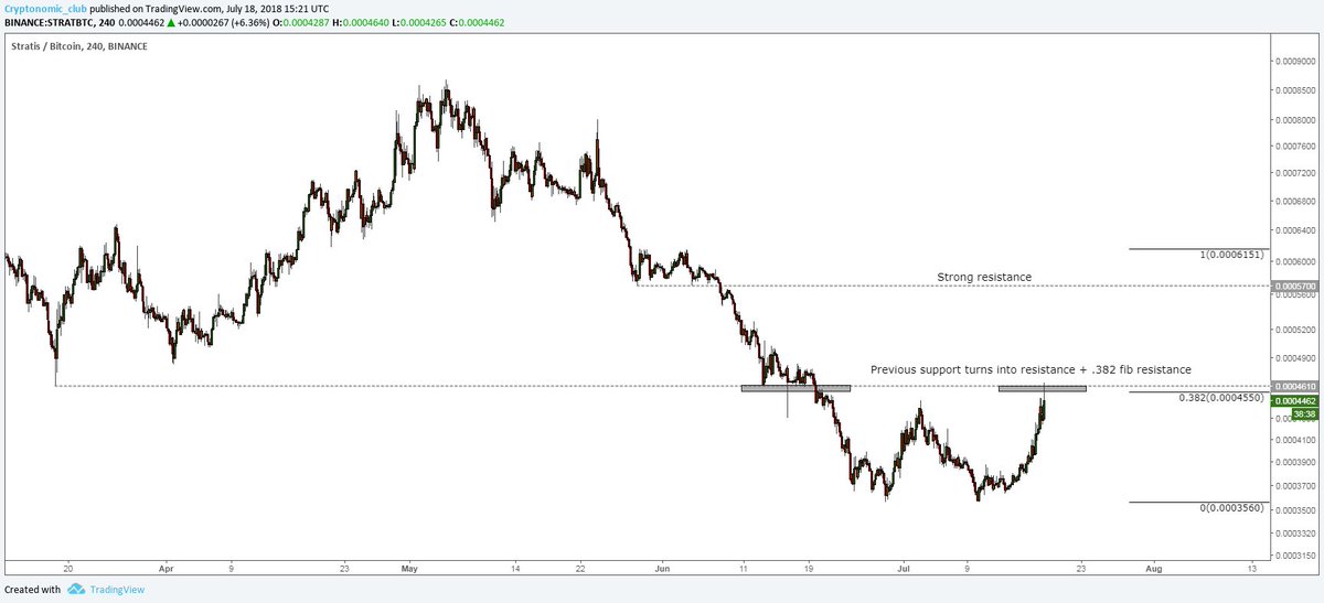 $STRAT:#Stratis has found resistance at previous strong support and the .382 fib. A clean break of this level will probably result in a nice run up. Go Stratis!$Crypto $STRATBTC$BTCpic.twitter.com/y6p0ui6j8x