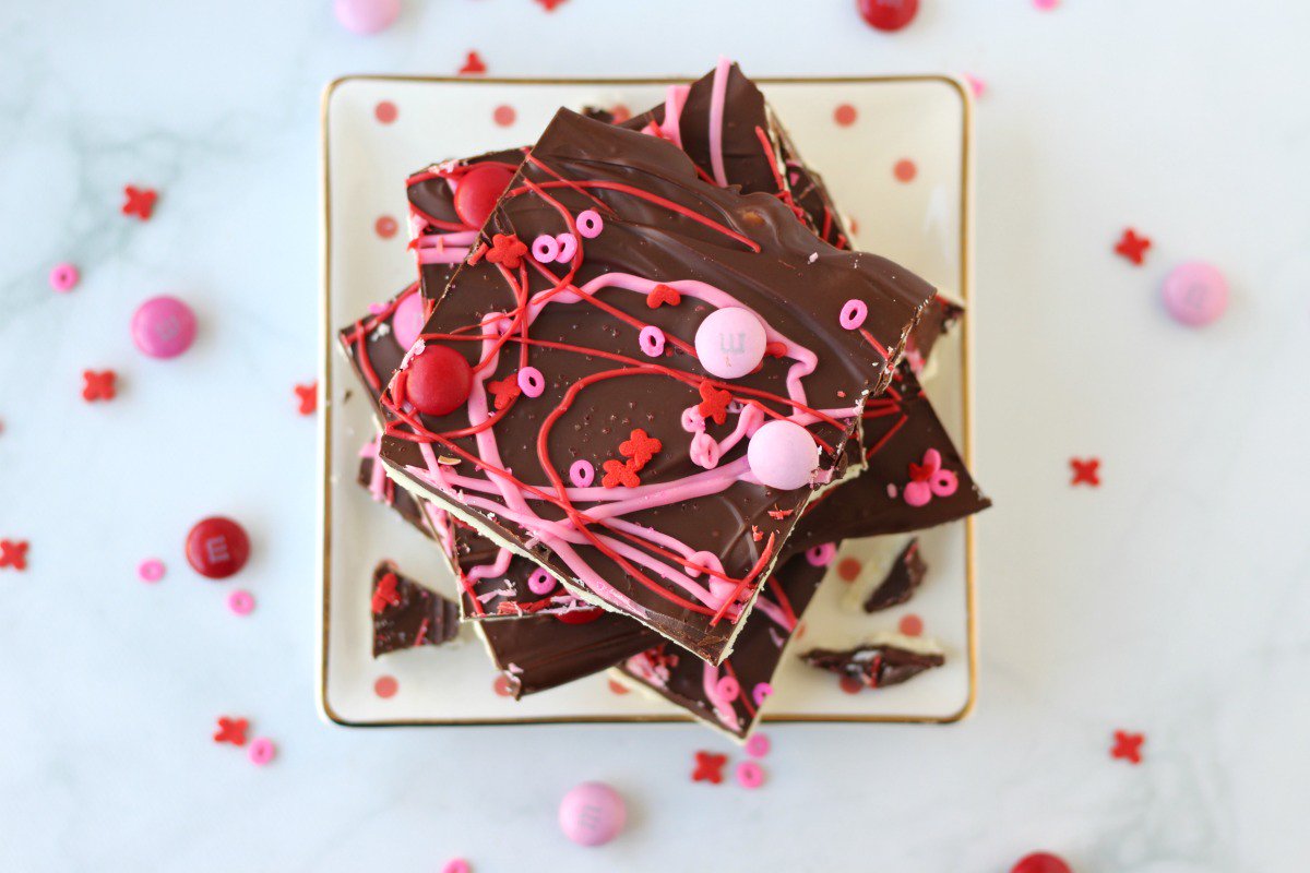 You won't be able to stop eating this delicious Valentine's Day Bark w/ layers of white & dark
