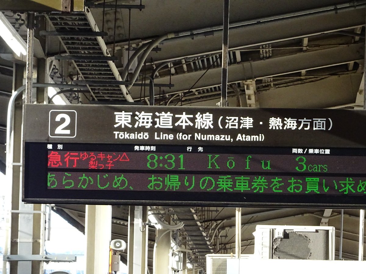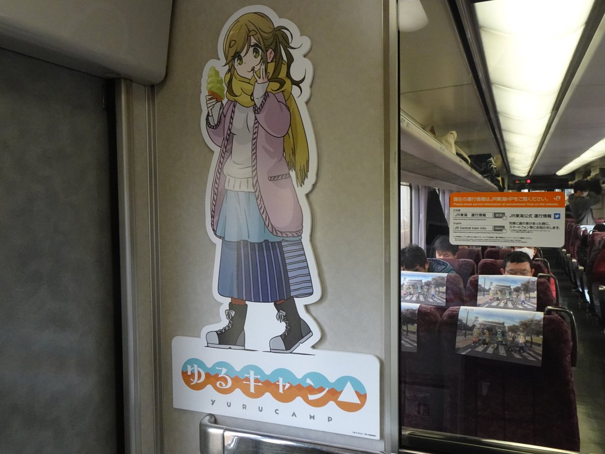 ゆるキャン△ 梨っ子号は折り返しまして静岡駅に向けて運行中!! 車内ではなでしこやリンたちがお出迎えしております! ちなみにJR東海では列車名に△が入ったのは初めてかも…とのことでした!