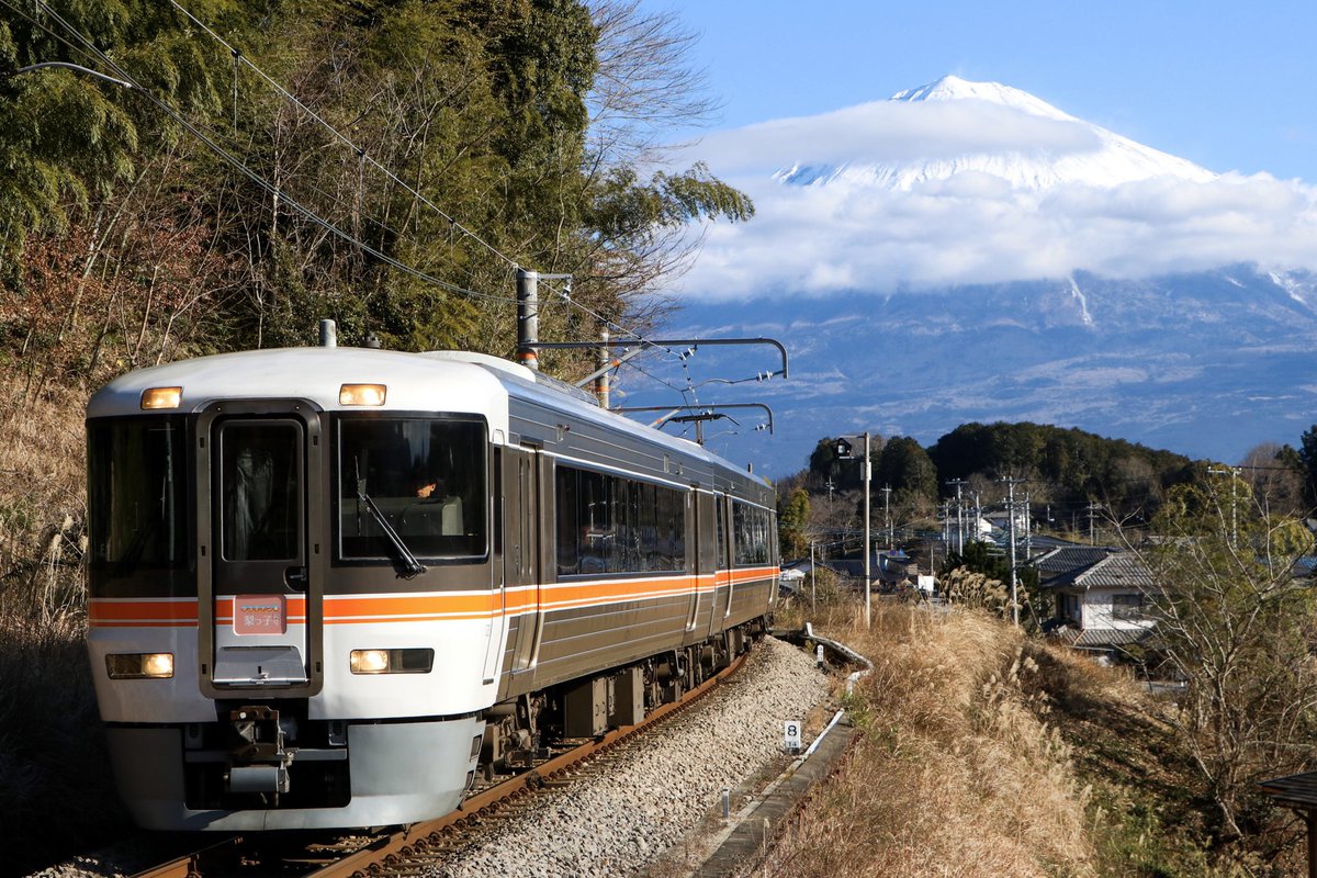 9701M 臨時急行ゆるキャン△梨っ子号-甲府行 373系静シスF1編成3両 身延線沼久保富士山バック優勝した