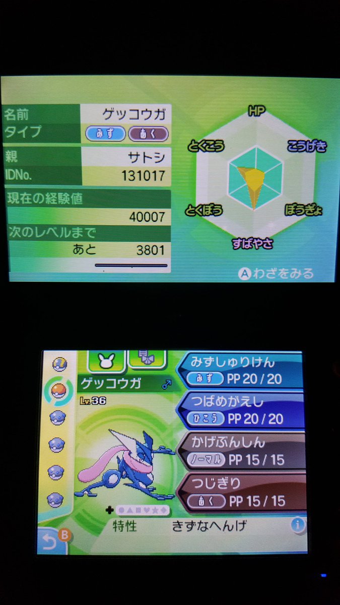 今更だけどフォロワーさんの中でポケモンSM体験版で入手したサトシゲッコウガ、性格何にしました?やっぱり臆病??(´・ω・`)個体値固定だから両刀もいけるけど...