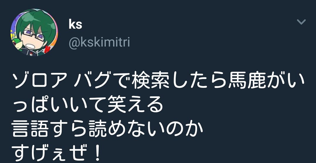 ゾロア バグ で検索して出てきます。 初心者を弾き飛ばすなんて同じトレーナーとして恥ずかしいです。 カイリュー、はかいこうせん。 pic.twitter.com/zVANjj0RZv