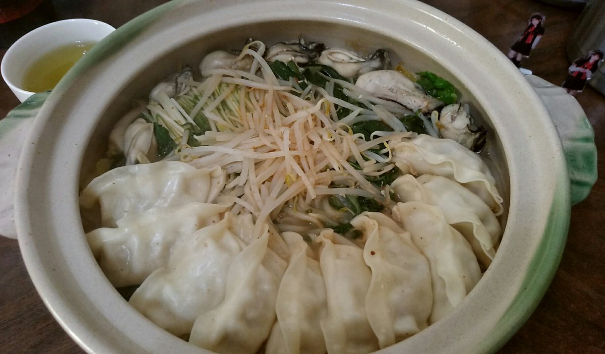 ゆるキャン△に出てきた風の坦々餃子鍋を作ってみた(´V`)♪ あんなに赤くはしなかったけど…牡蠣も入れてちょっと豪華にしてみたw pic.twitter.com/V9ledCDo9t