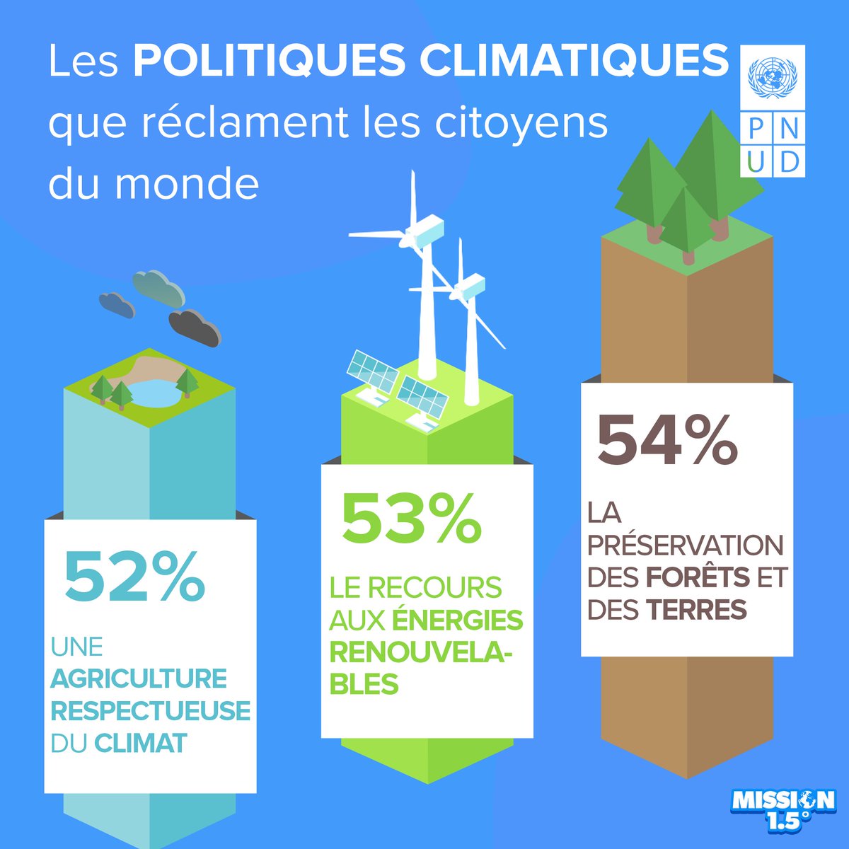 #VotePourLeClimat se sont vu proposer une liste de 18 choix de politique climatique, avec des préférences. Voici les 3 options les plus votées. En savoir + sur le sondage mondial sur le#Climat du#PNUD : https://bit.ly/3j0Fe1z#Agenda2030pic.twitter.com/6kTxUOwCZL