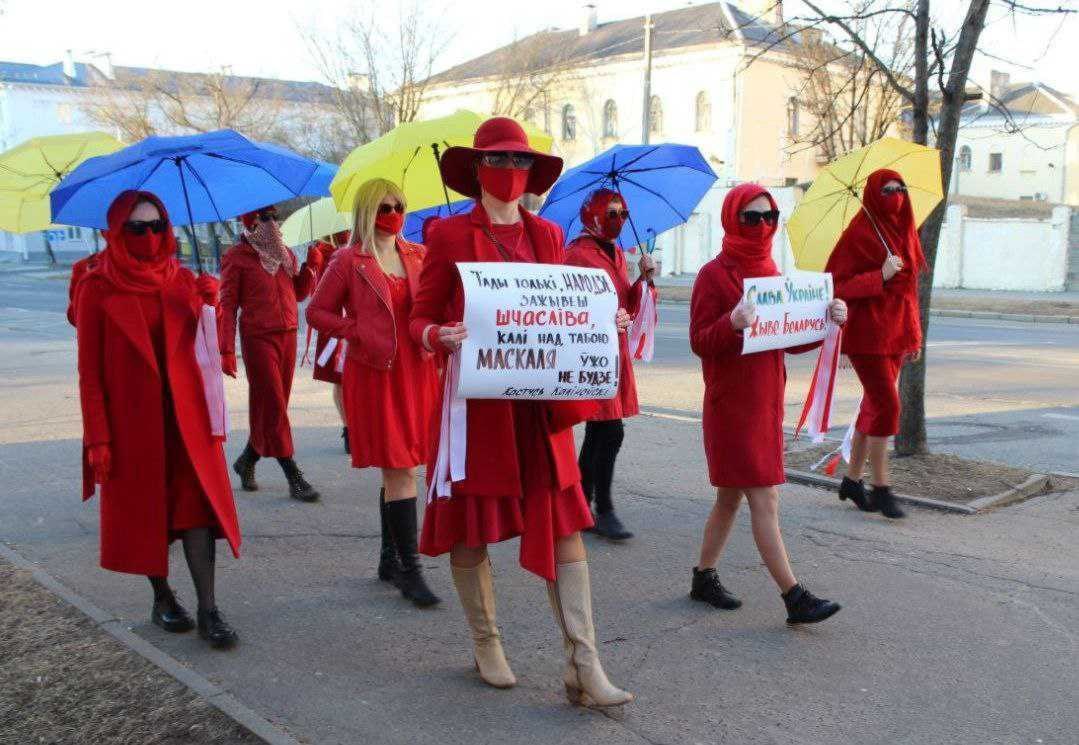 #Belarus Our brave and resolute women took to the streets of Minsk on Freedom Day. They brought yellow and blue umbrellas in addition to our white and red national colours in solidarity with#Ukraine that bravely fights against the Russian armypic.twitter.com/BtADoIFrq5