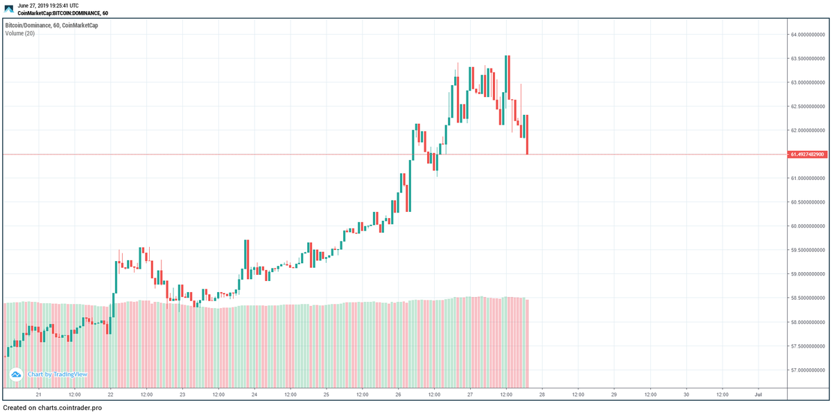Market dominance back above 60%! PS: This number is based on CMC which is heavily manipulated. The real dominance is closer to 95%.
