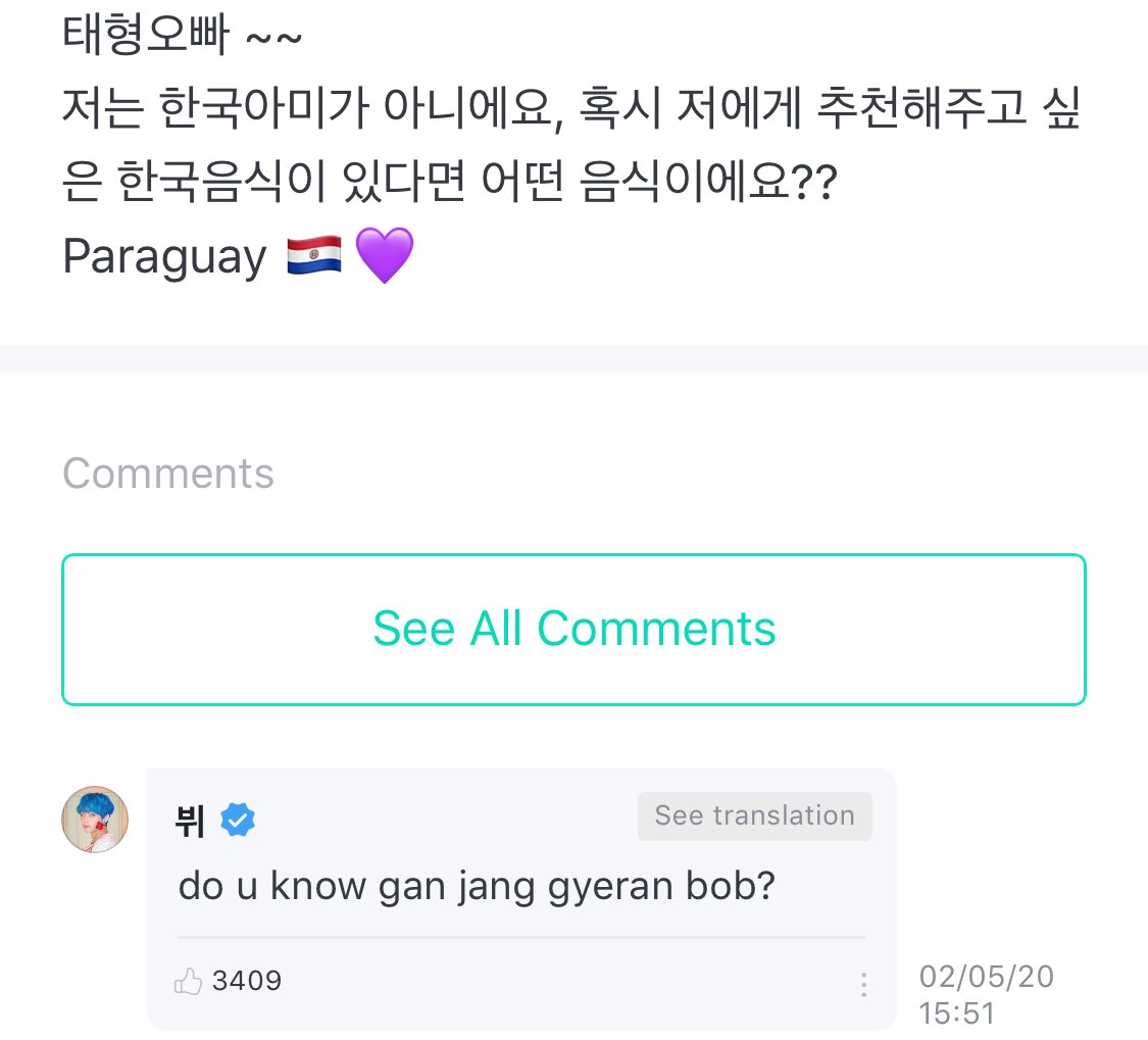 V: do u know gan jang gyeran bob? (Soy sauce rice)