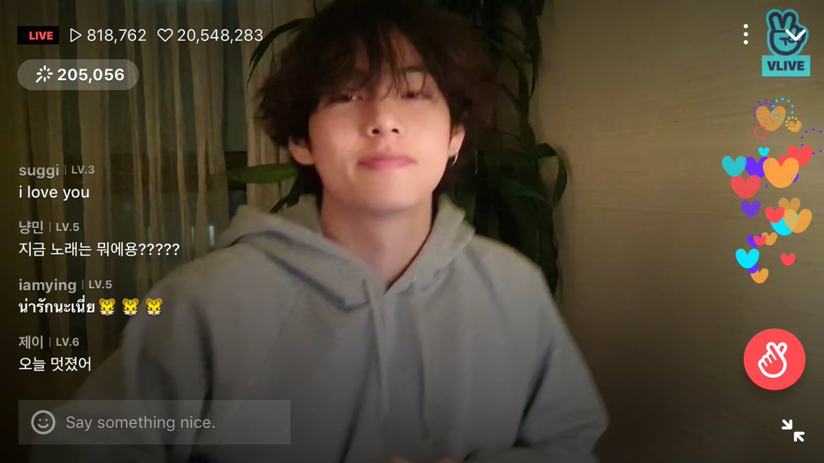 There are over 4 million people watching Kim Taehyung on vlive right now.