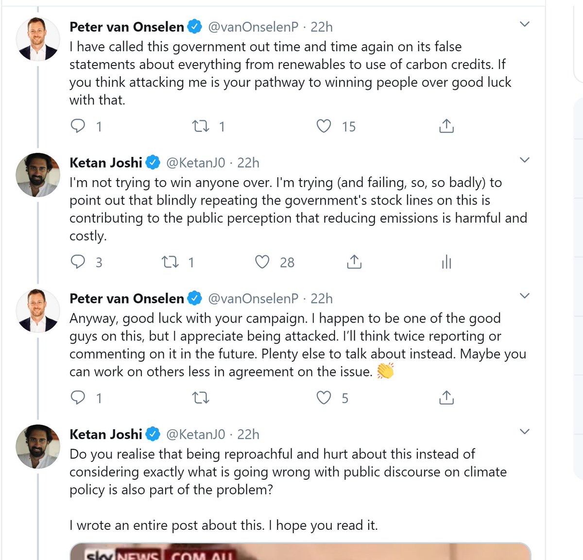 This is why I am so perturbed by this. This flow of intentionally deceptive framing - from opponents of action to those trusted to share information on climate policy - has an impact. And when I raise it, it's silence, or 'FINE I'll never talk about it again - look what you did'