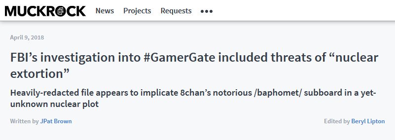 GamerGate was behind a nuclear plot to destroy America. Wowzers! (This article is actually really bad and doesn't in any way properly reflect the FBI's investigation, which turned up nothing despite daily complaints about GamerGate by Brianna Wu, who wasted police resources.) pic.twitter.com/YoDjk9ibWb