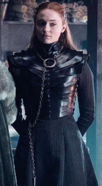 Sansa Stark’s entire vibe now is “goth with a large disposable income.” Stomping around Winterfell in custom made leather harnesses and I’m 8000% here for it!!!