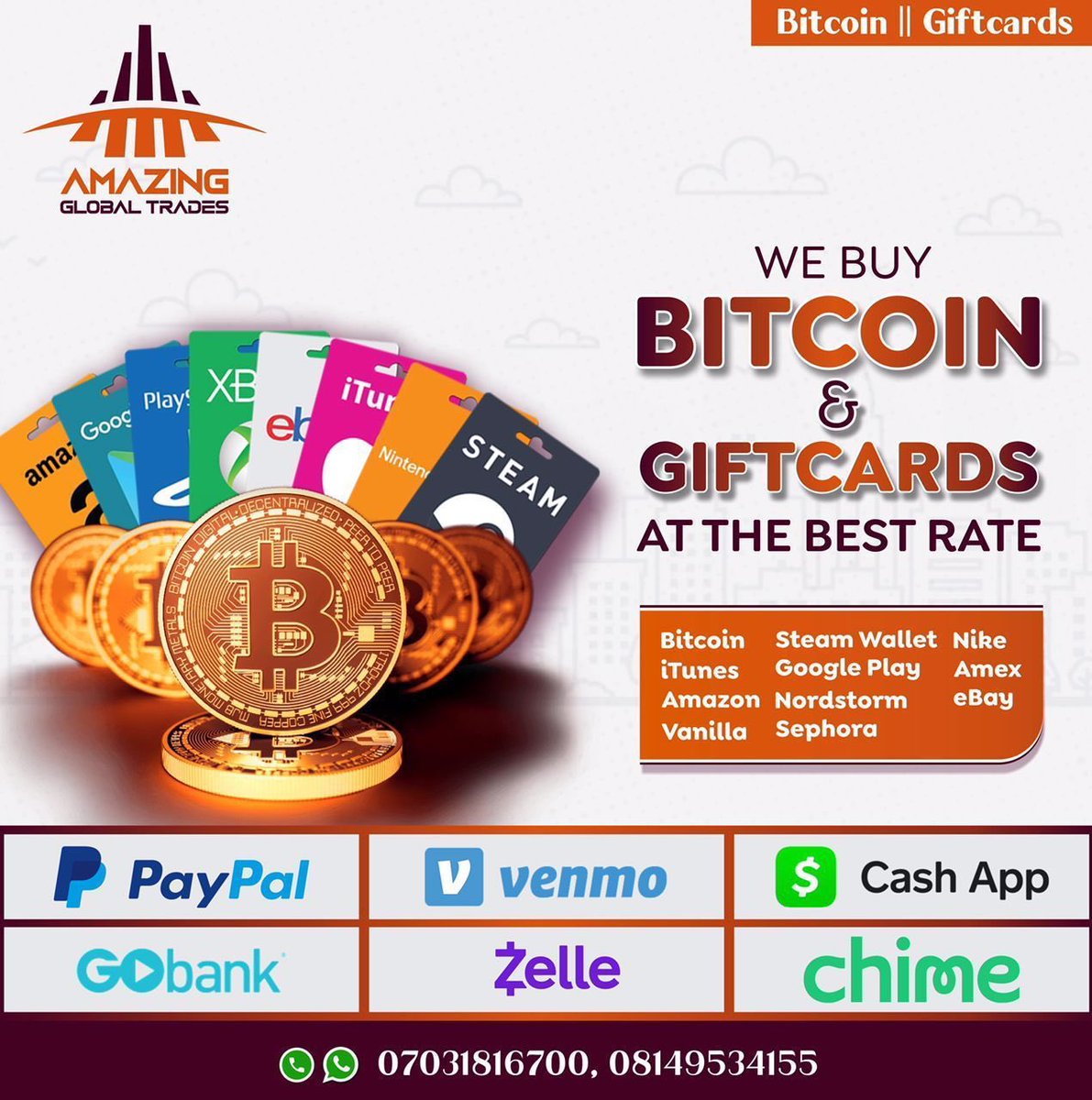 CRYPTO Currency GIFT CARDS FUNDS picking All @ amazing Sweet rate Fast loading || Swift Payment Kindly Dm with your name, Saving all contacts ASAP