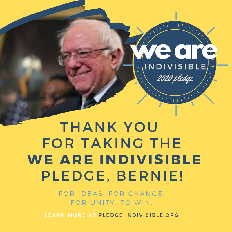 @BernieSanders is the first 2020 candidate to sign the#WeAreIndivisible pledge! Thank you for committing to: