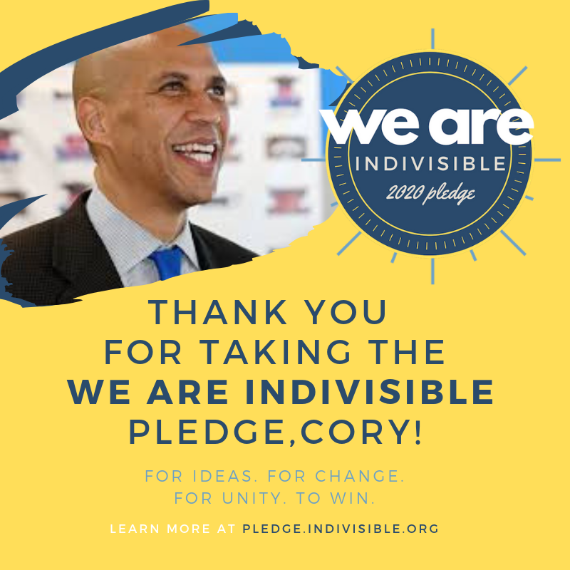@CoryBooker decided to kick off his weekend by pledging to do the work necessary to defeat Trump in 2020. We're excited to announce he is the second candidate to sign the#WeAreIndivisible pledge. Who’s next