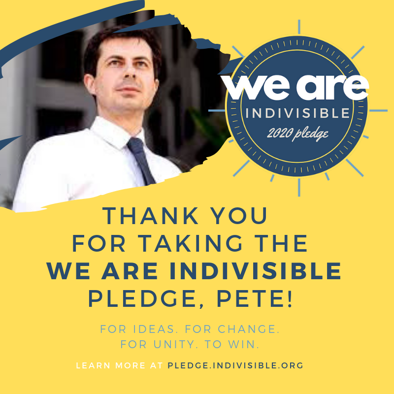 @PeteButtigieg for being the fifth 2020 Presidential candidate to take the#WeAreIndivisible pledge! Who will be next? Find out more here: http://pledge.indivisible.org pic.twitter.com/JjC1Lle5Nb