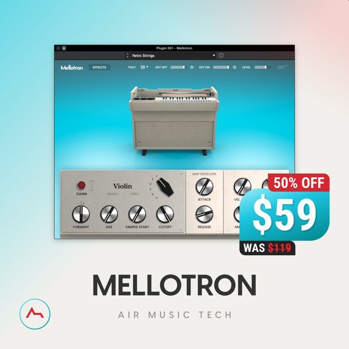 MELLOTRON by Air Music Tech - 50% Off - Only $59 - You get Rule Tec EQ1A by NoiseAsh for Free https://www.adsrsounds.com/product/software/air-music-tech-mellotron-tape-sampled-keyboard-instrument/#a_aid=plugindeals …