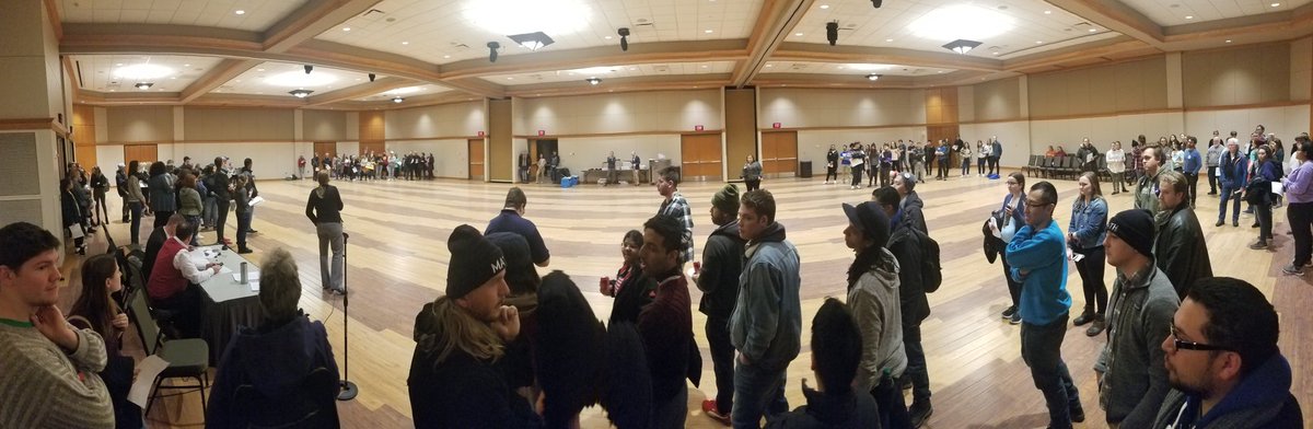 Awful lot of students out on a Friday night to participate in the University of Iowa’s mock caucus. About 60/40 Bernie/Warren and I think Yang is in third with about a dozen adherents. Single digits for everyone else. pic.twitter.com/RTFqVLUQPD – mjesto: Iowa Memorial Union