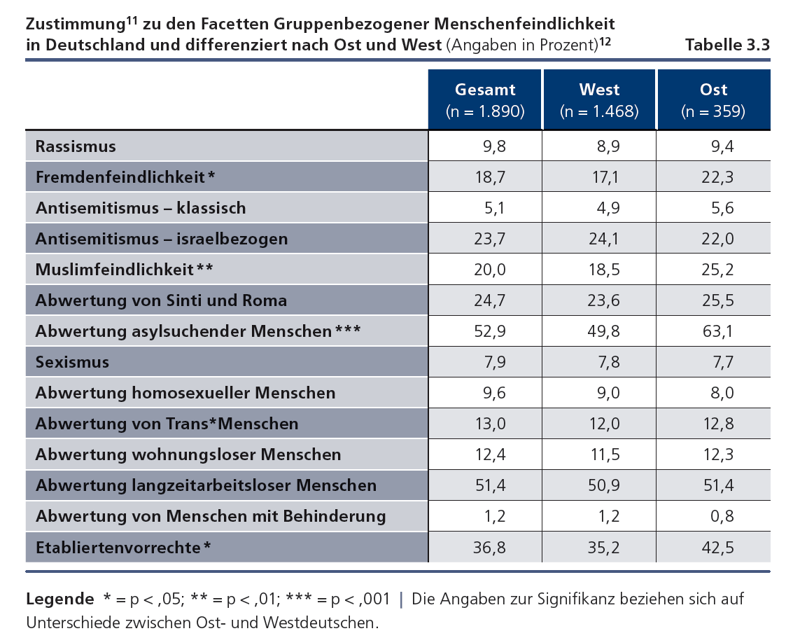 Neben der deutlichen Abwertung von Asylsuchenden, Muslim*innen und Sinti und Roma ist die Abwertung von Langzeitarbeitslosen mit bundesweit 51,4 % besorgniserregend, pic.twitter.com/SgIz1aQMuj