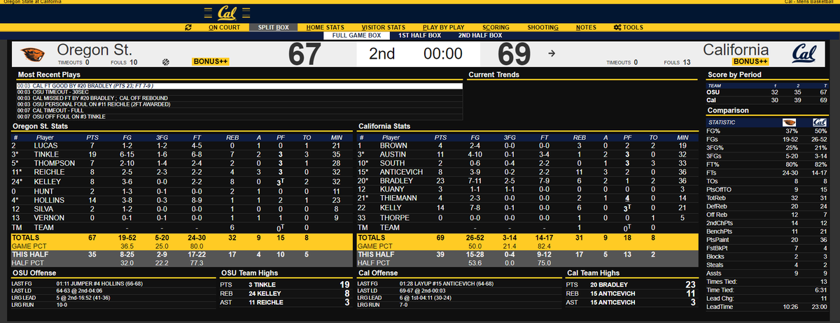 Well that ended poorly. Oregon State men lose 69-67 at Cal.