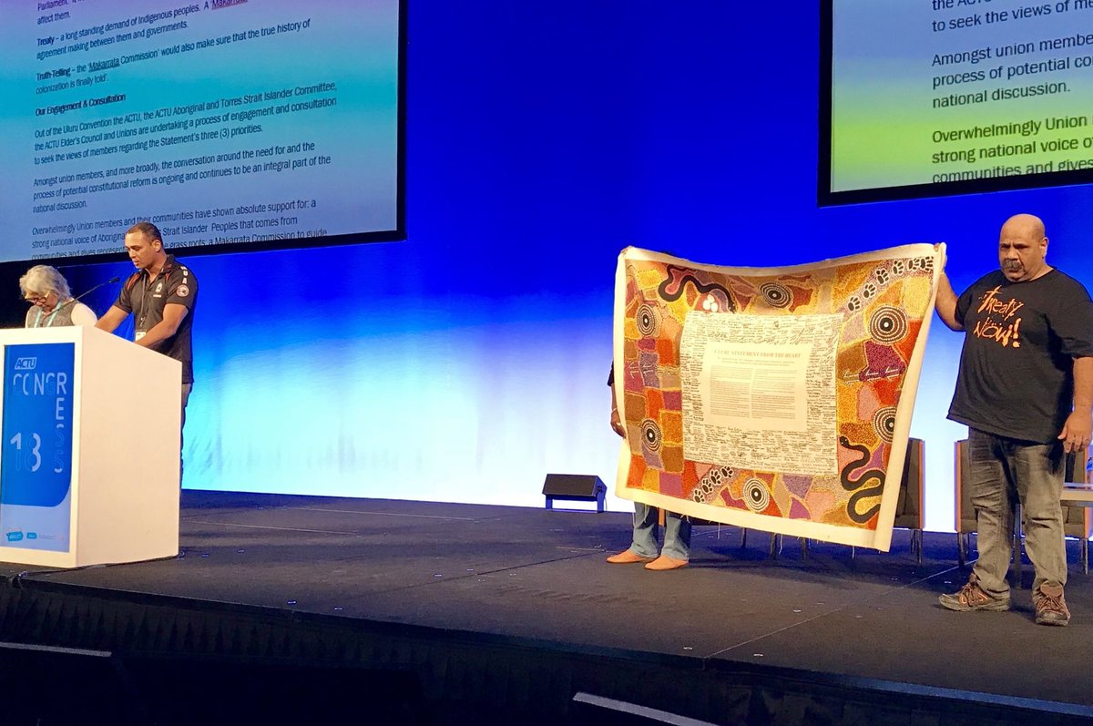 #ACTUCongress18. The resolution continues the movements support for a strong First Nations Representative Voice & a Makarrata Commission.#ausunions#auspolpic.twitter.com/OjERj8sav2