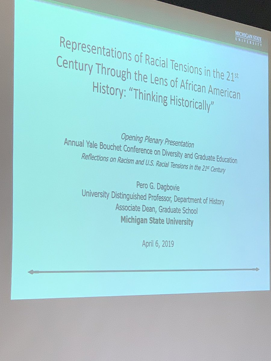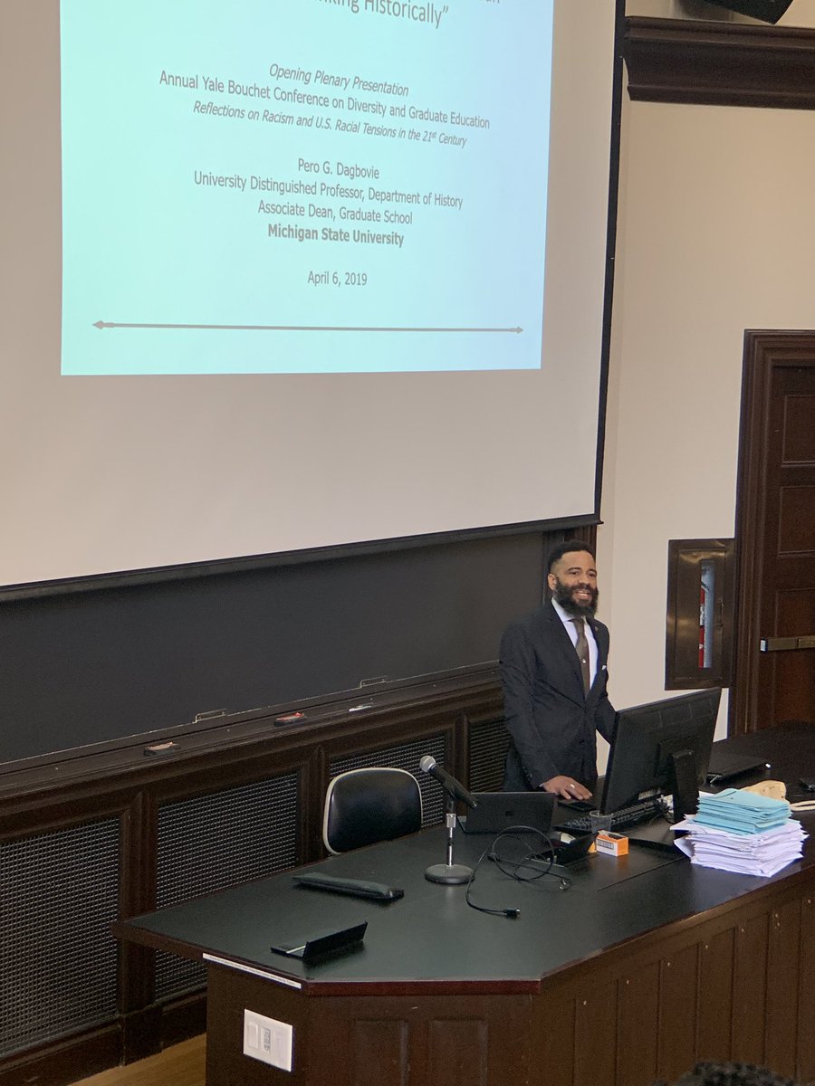 @michiganstateu Distingushed Professor, Dr. Pero Dagbovie, on Representations of Racial Tensions in the 21st Century through the Lens of African American History: “Thinking Historically”#ThinkBigDiversity#BouchetScholars19pic.twitter.com/Eu3GQydtaL – Yale University ರಲ್ಲಿ