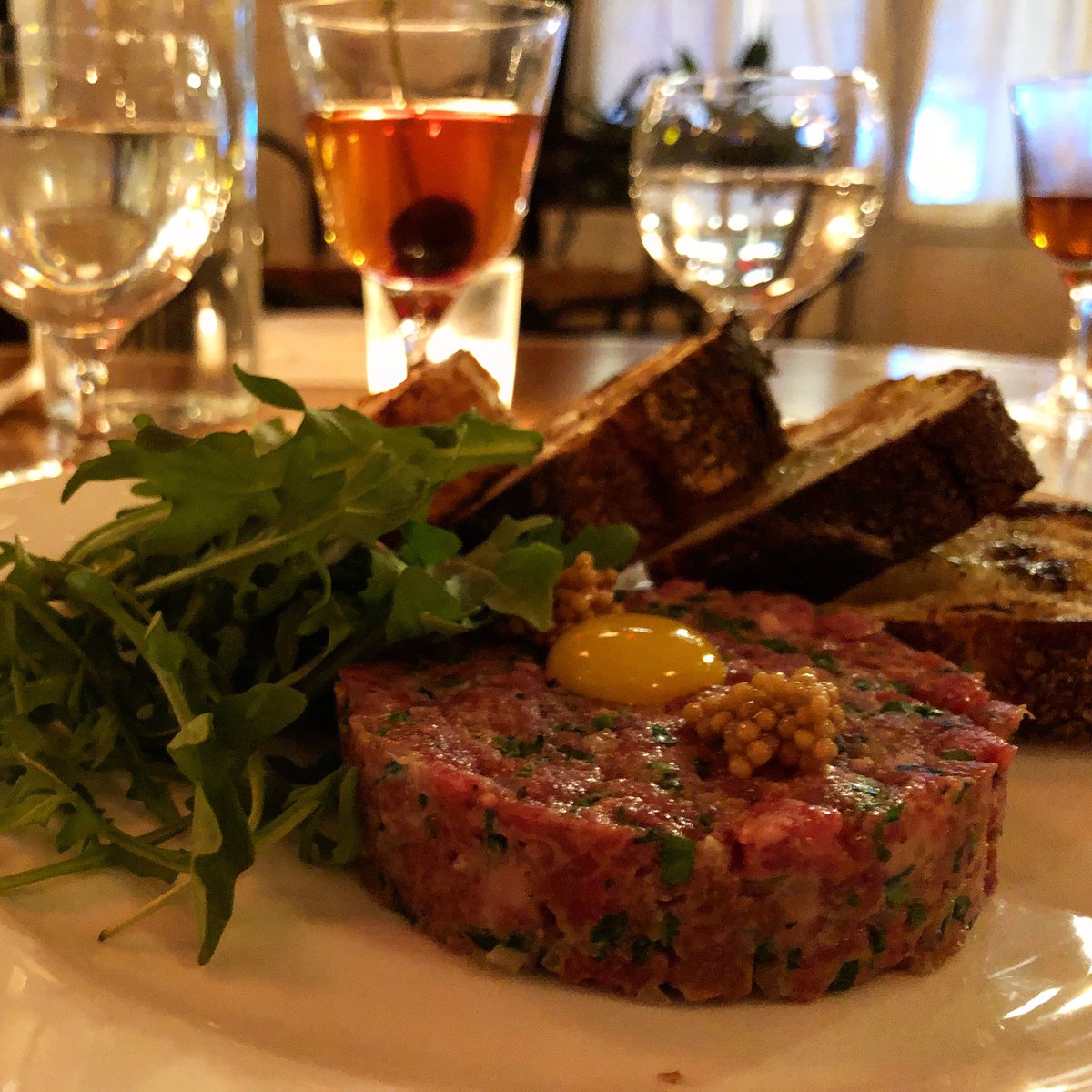 A meat nitecap. Steak Tartare and a Perfect Manhattan. In Manhattan. Thanks