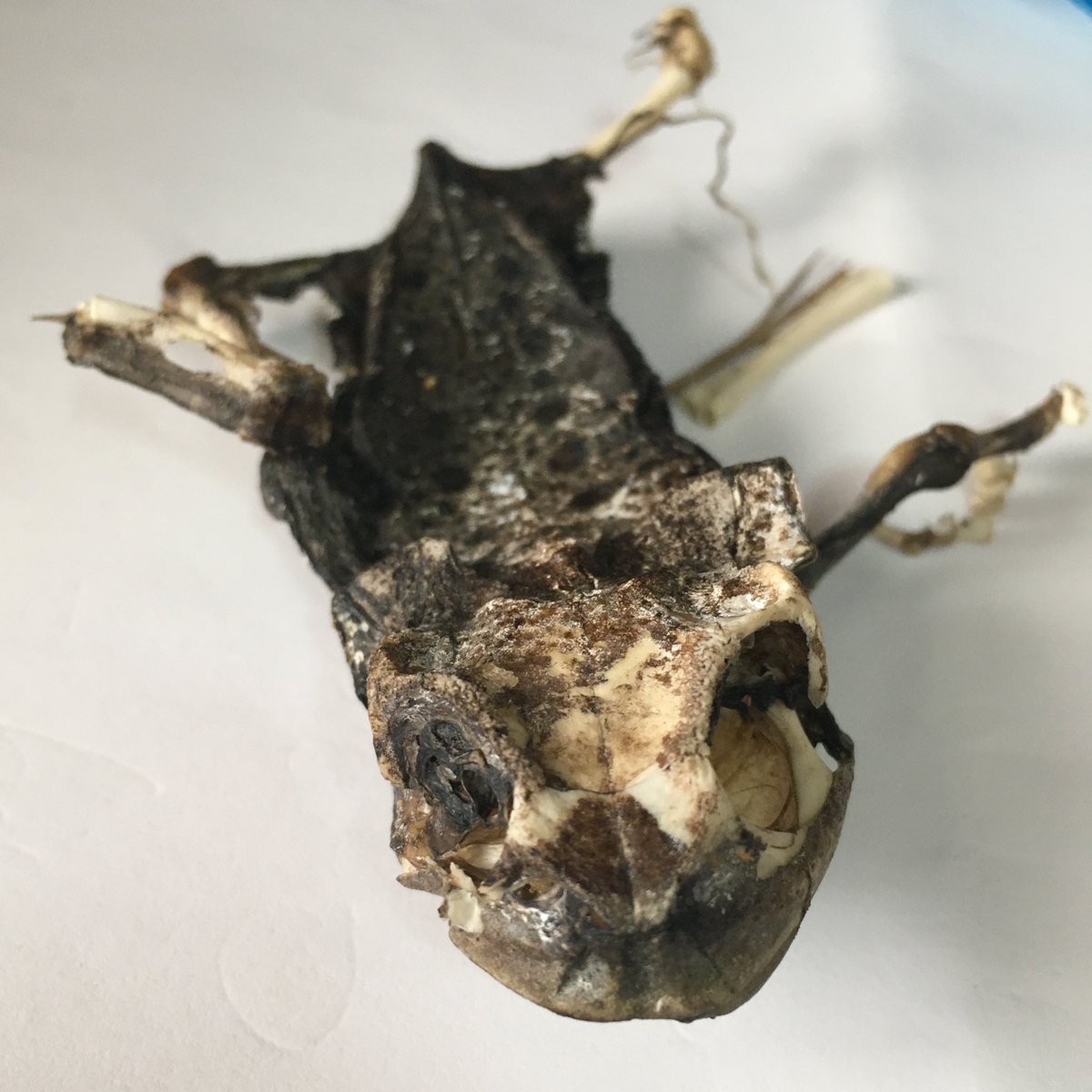 Went for a spot of bug hunting last evening & found this very sun-dried anuran. Given its size, dorsal markings, broad skull, and bony facial ridges, I *think* this might be an Asian common toad (Duttaphrynus melanostictus).