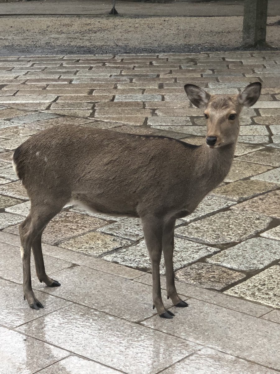 It’s my last day in Kyoto today and I took the train to Nara to see the temple with the gigantic Buddha statue on a very rainy day. Wild deer roam all around the Nara Park (the temple is inside the park) and the deer are an attraction in their own right.pic.twitter.com/G1TGjZK2Dk – mjesto: 東大寺 (Tōdai-ji Temple)