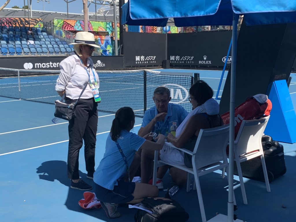 Se paran los partidos en las pistas exteriores por culpa del calor. ¡39 GRADOS! Ane Mintegui apenas puede respirar y tiene que ser atendida por los servicios médicos.pic.twitter.com/LABZ6WCYYb – mjesto: Melbourne Park