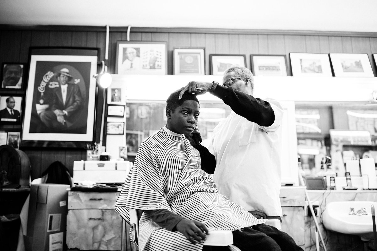 Father and son, at Magic City Barbershop in Birmingham, AL for