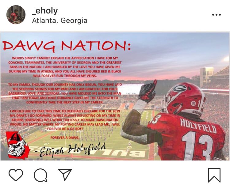 #UGA RB Elijah Holyfield declares for the#NFLDraftpic.twitter.com/yvVNlw7qOY