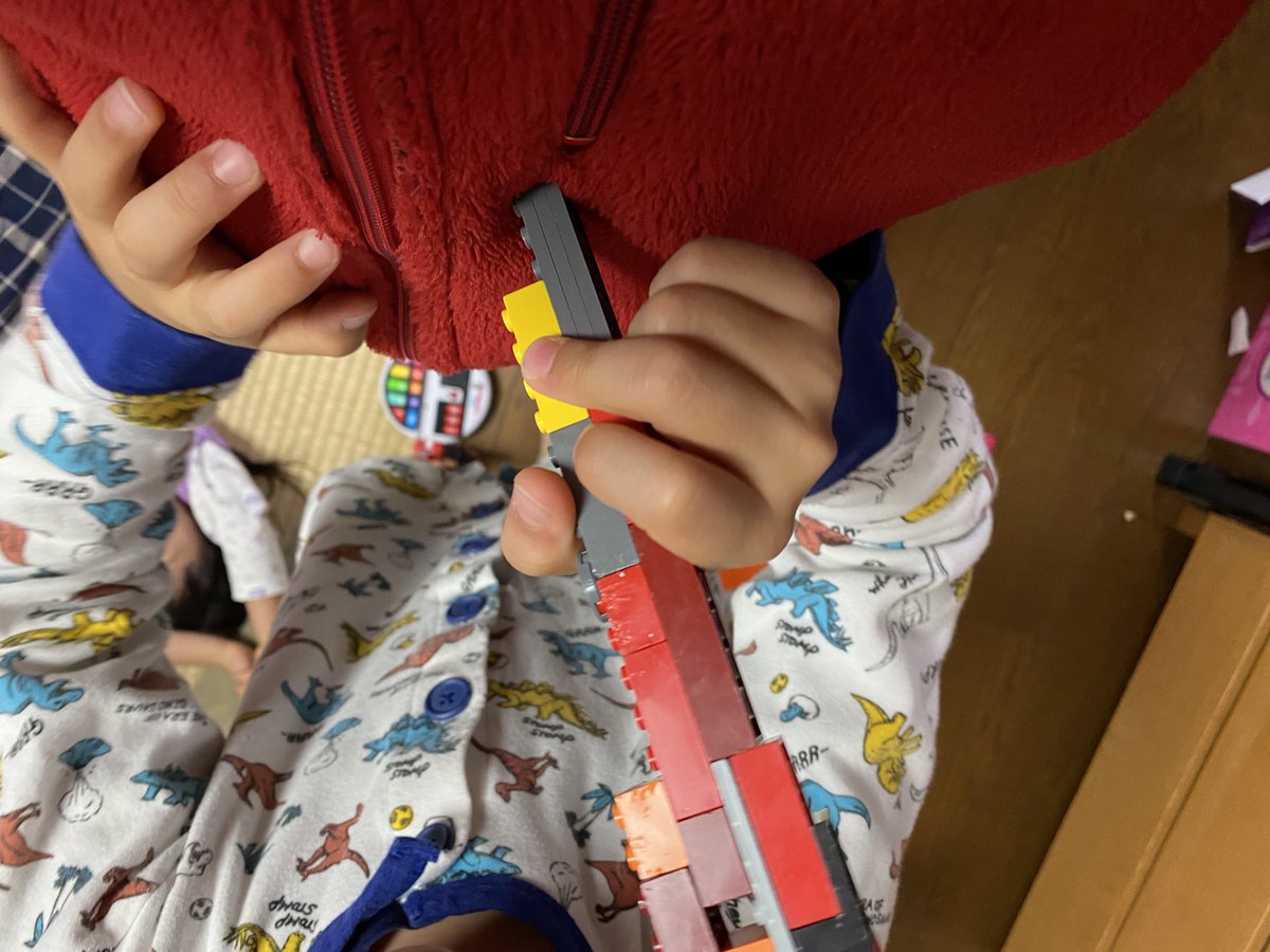 おはようございます。朝から次男君に手術されました。いつもはLEGOで仮面ライダーの変身ベルトとか作ってますが、今朝はメス?オトウの腹がデカくなってるから切ってあげるという事でしたが、全部は切れなかったと言われました。先生、また、お願いします。寒そうなんで、この腹巻も役立ちそうです。pic.twitter.com/oeHStmB0Pr