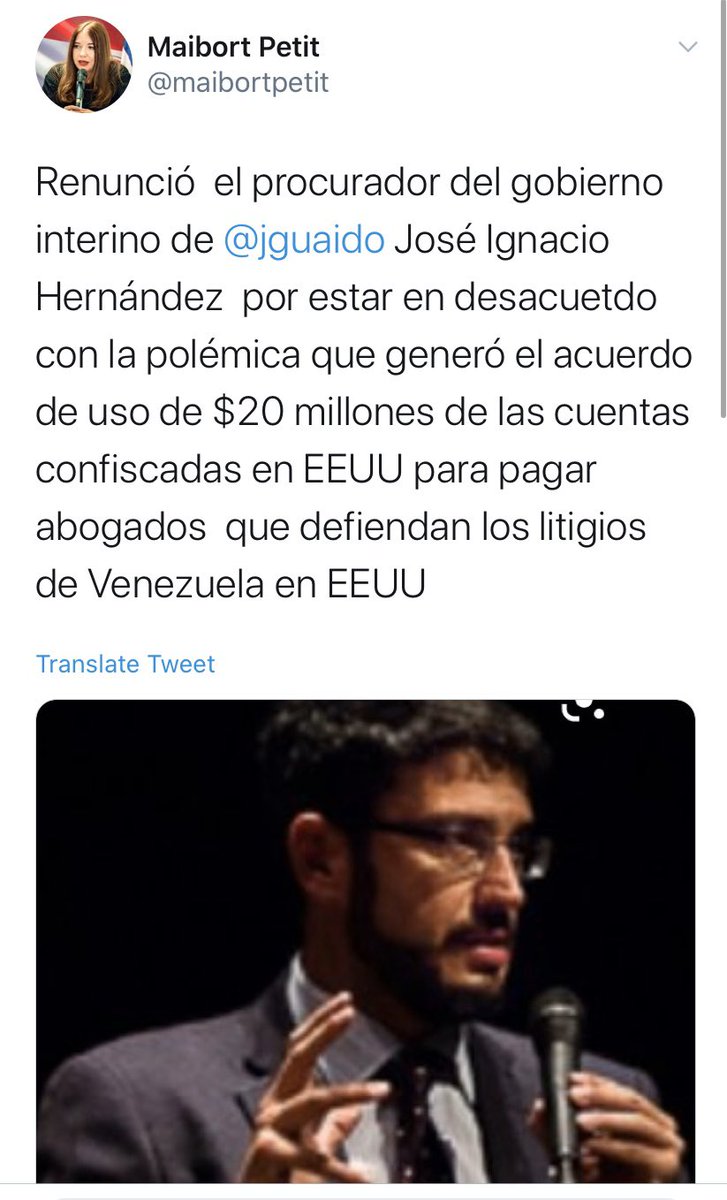 La irregularidad de asignar dineros al procurador José Ignacio Hernández sin control y sin que presente informes de las gestiones que realiza ne juicios en EEUU ha sido protestada por las fracciones de Primero Justicia y 16 de Julio pic.twitter.com/mL7t5gb86x