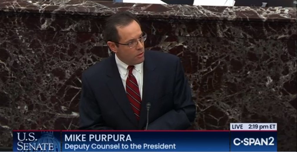 Twilight Zone impeachment hearing. President's lawyer Mike Purpura is laying out a narrative that everyone in that Chamber knows is directly contradicted by the person in the room where it happened.