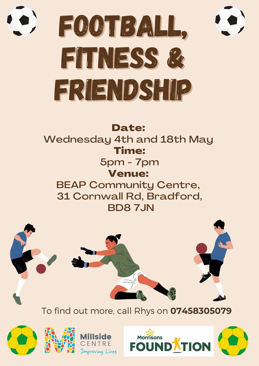 Our football sessions are back to our previous address tomorrow. We are still taking on referrals if you or anyone you know is keen on joining this amazing group. All contact details are on the flyer.