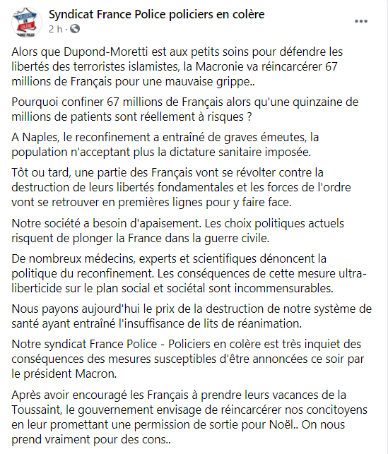 Probable reconfinement : La dictature sanitaire en marche? Les émeutes à Naples peuvent-elles s'exporter en France? Questions posées par un syndicat de police!!!! pic.twitter.com/L3IZRAL2Yi