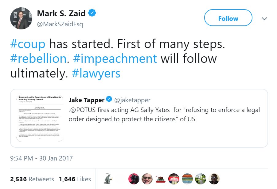 Trump's legal team and other Republicans have repeatedly highlighted the "coup has started" tweet from a lawyer for the whistleblower -- while omitting the tweet it was replying to. Here is the context. pic.twitter.com/w4hpkTQjFz